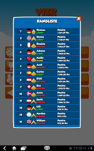 - Je mehr Punkte du bei „Vier Gewinnt“-Spielen gewinnst, desto höher steigst du in unserer Rangliste.