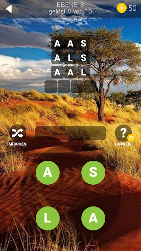 In jedem Level Verbinde die Buchstaben und finde alle Wörter.