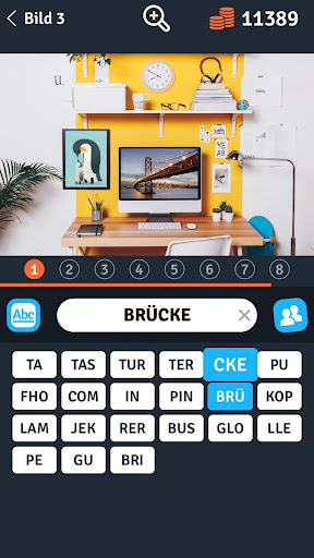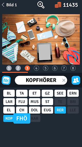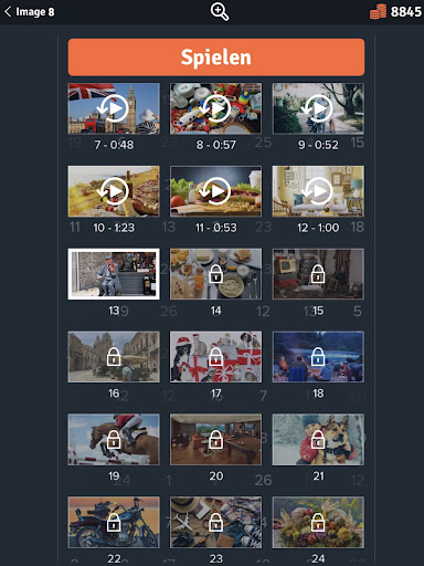 Sobald die 8 Wörter herausgefunden wurden, wird das nächste Bild mit 8 neuen Wörtern, die zu erraten sind, durch eine Denksportreise zu verschiedenen und farbenfrohen Fotos freigeschaltet.