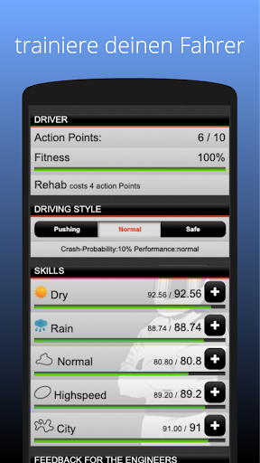 Trainiere deinen Fahrer und entwickle dein Auto.