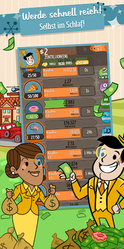 Willst du keine Knöpfe mehr drücken? Automatisiere dein kapitalistisches Imperium, stelle Manager ein, und erhöhe die Profite. Es geht nur nach OBEN, OBEN, OBEN!