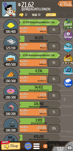 Überhole mithilfe des Shops die Konkurrenz, Investor: Kauf mehr Gold, Zeitschleifen oder Manager und treibe deine Finanzen voran.