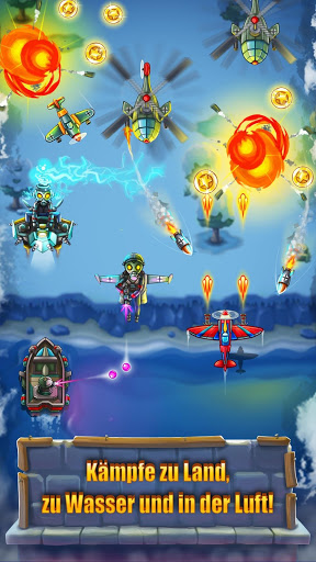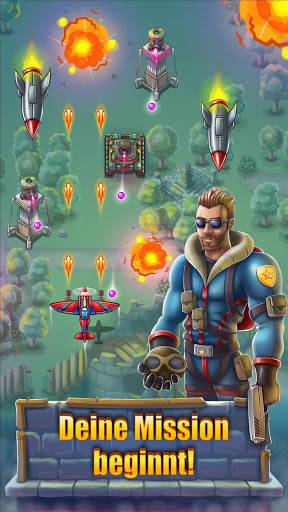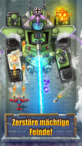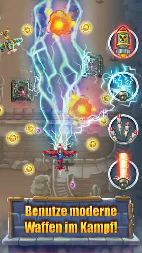 ** Boosten Sie Ihr Flugzeug, sammeln Sie Power-Ups im Kampf oder kaufen Sie neue Waffen, um im Hangar zu upgraden!