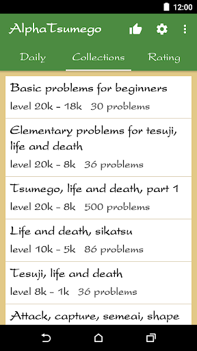 * Alpha Tsumego bietet Ihnen tägliche Probleme von verschiedenen Sets