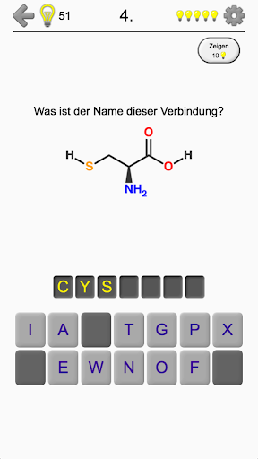 Die App ist in 8 Sprachen übersetzt, darunter Deutsch und Englisch. So können Sie die Namen von Aminosäuren in jeder dieser Sprachen lernen.