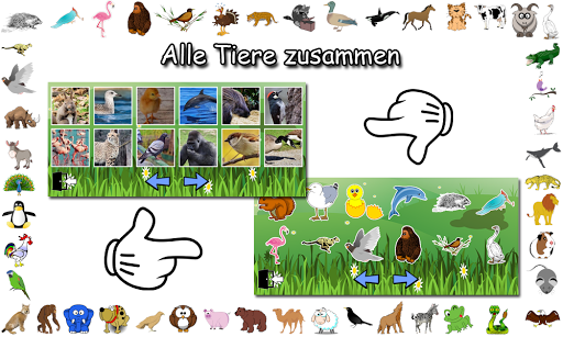 Das Tiergeräusche- und Namensspiel hat zwei Hauptmodi: