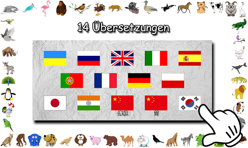 Das Spiel Tiergeräusche ist in 14 Sprachen übersetzt und gesprochen: Ukrainisch, Russisch, Englisch, Italienisch, Spanisch, Portugiesisch, Französisch, Deutsch, Polnisch, Japanisch, Hindi, Traditionelles Chinesisch, Vereinfachtes Chinesisch, Koreanisch.