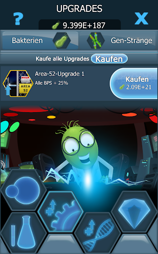 Süchtig machende, einfache Spielmechanik mit der Produktion von Bakterien.