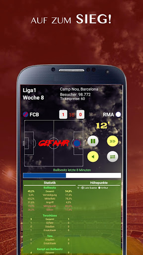 • Wähle Spieltaktiken und mache Auswechslungen die deine Mannschaft zum Sieg führen