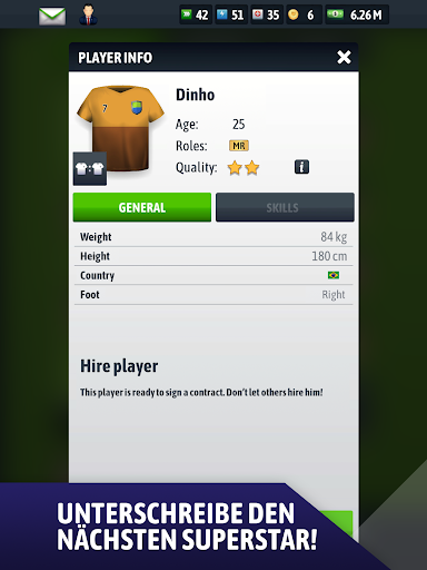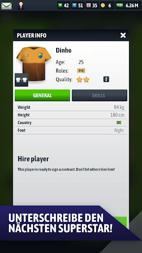 Durchsuchen Sie den Transfermarkt mit Hilfe Ihres Scouts nach einem neuen Stürmer. Schicken Sie sie, um junge Spieler auf der ganzen Welt zu beobachten und den nächsten jungen deutschen Fußballstar zu unterzeichnen. Verbessere die Fähigkeiten deiner Fußball-Sportmannschaft