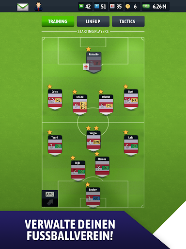 Verwalten Sie Ihren Fußballverein als echten Fußballstar, gewinnen Sie den Respekt der Sportmedien und werden Sie der beste Fußballmanager Ihrer Zeit. Machen Sie die Anhänger Ihrer Fußballmannschaft stolz!
