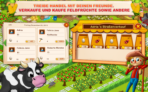 - Treibe Handel mit deinen Freunde. Verkaufe und kaufe Feldfrüchte sowie andere Produkte!