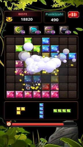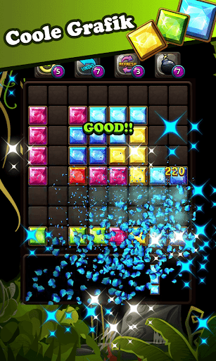 Lege die Blöcke in das Brett. Sobald Sie eine vertikale oder horizontale Linie ausgefüllt haben, verschwindet sie und gibt Platz für neue Blöcke frei.