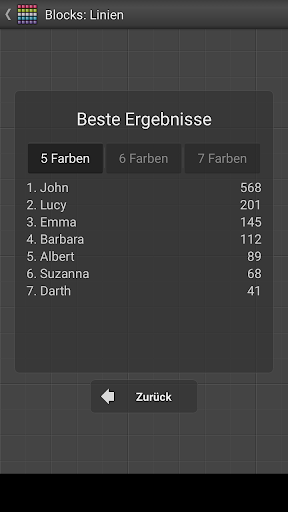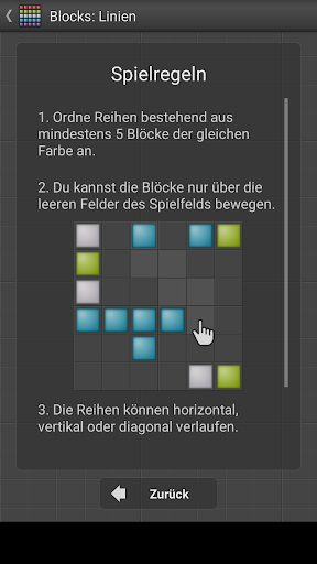 - Ordne Reihen bestehend aus mindestens 5 Blöcke der gleichen Farbe an. Je mehr Blöcke in einer Reihe sind, desto mehr Punkte erhälst du.