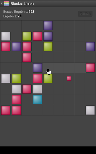 Drei Schwierigkeitsgrade, klare, farbenfrohe Grafiken und eine süchtig machende Spielidee garantieren riesigen Spaß für jedermann. Blocks: Linien ist ein einfaches aber süchtig machendes Rätselspiel. Die Grundidee besteht darin, Reihen aus den bunten Blöcken zu bilden.
