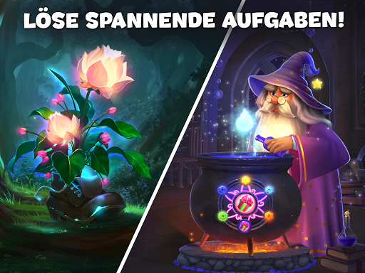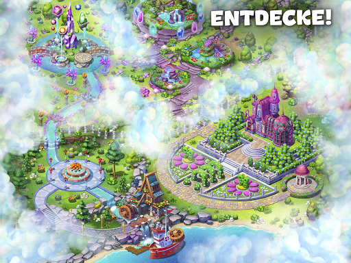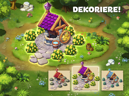 ✿ 7 Bereiche im Garten, jeder mit eigenen Bauten: Brunnen, mysteriöse Labyrinthe, alte Villen. Schließen Sie 3-Gewinnt-Levels im magischen Garten ab.