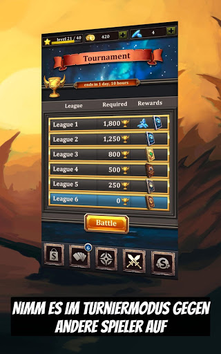 * Stelle dich in Turnieren mit Ligen und Saisons, um deine heroischen Fähigkeiten unter Beweis zu stellen.