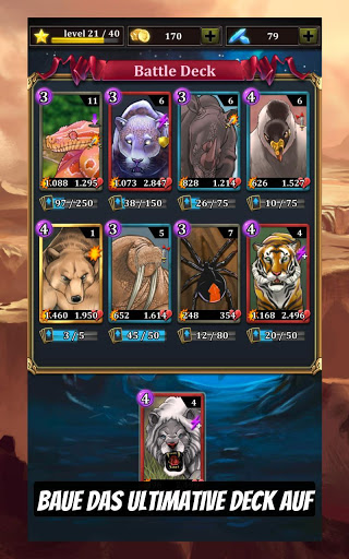 * Normale, seltene, epische und legendäre Tierkarten mit vielen Upgrade-Level.