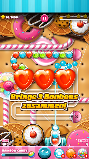Mach weiter bis 3 Bonbons die gleiche Farbe haben, um Missionen abzuschließen!