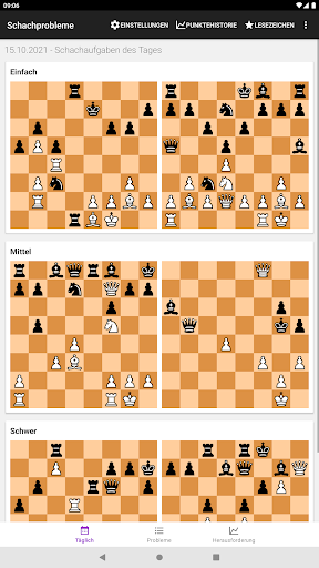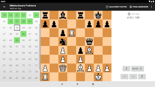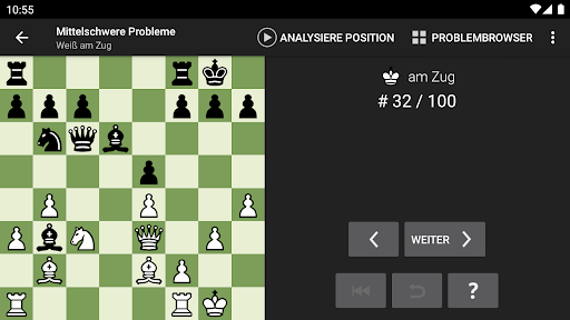 - Nutzen Sie den Herausforderungsmodus um zufällige Probleme auf Ihrem Level zu lösen und Ihr ELO Rating zu erfahren.