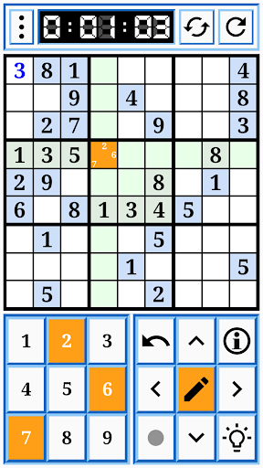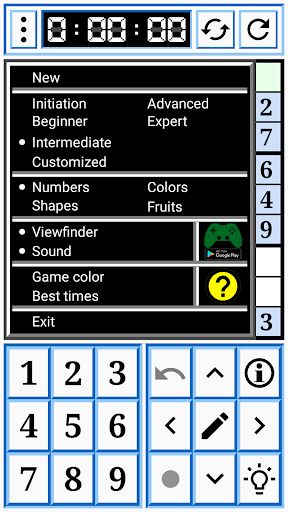 - Informationen über den aktuellen Status des Sudokus.