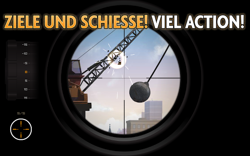 "Schieße auf Jetpacks, Piraten und berühmte DJ's. Werde mit *einem Haufen* Geld bezahlt. Errichte eine Sniper-Kriegsmaschine. Werde süchtig nach dem innovativsten Sniper-Spiel im App Store.