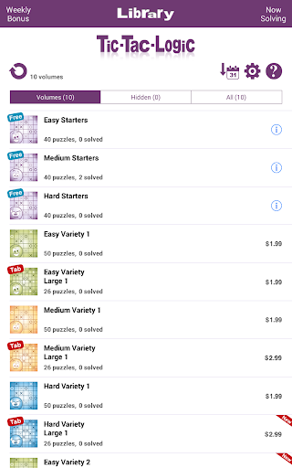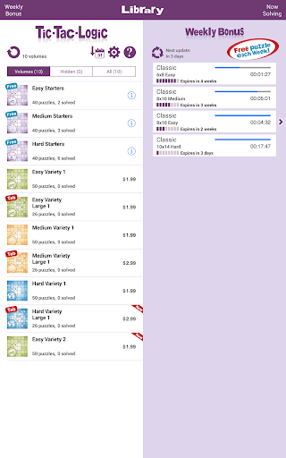Für mehr Spaß, Conceptis Tic-TAC-logic enthält einen wöchentlichen Bonusabschnitt, der jede Woche ein zusätzliches freies Puzzle bietet.