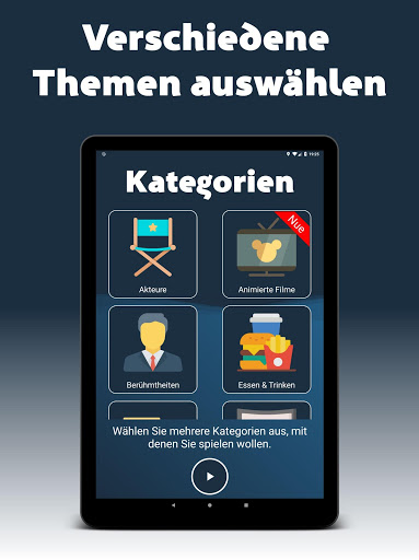 Spielen Sie mit Freunden oder der Familie und bilden Sie zwei oder mehr Teams. Als nächstes treffen Sie eine Auswahl aus den verschiedenen Deutsche Kategorien. Es ist beabsichtigt, dass für jede Mannschaft einer der Spieler die 5 Wörter oder Namen beschreibt oder darstellt, ohne das Wort tatsächlich zu sagen.