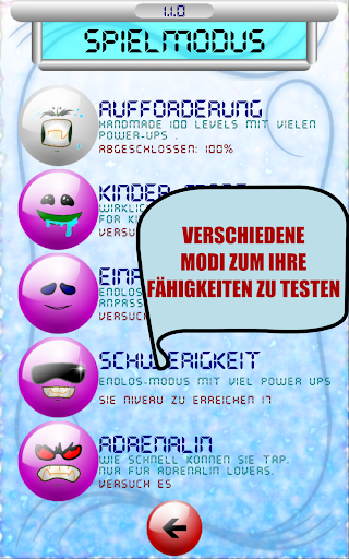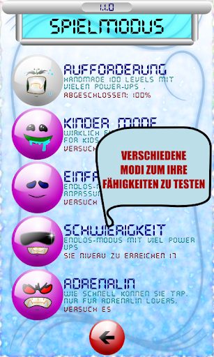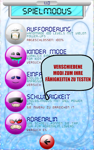 Auch gibt es 4 endlose Modi, die Sie ausprobieren können: Kinder-Modus, einfach, Schwierigkeiten, Adrenalin.
