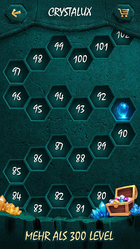 Das Gameplay ist das gleiche wie zuvor: Verschiebe die Sechsecke so, dass Kristalle der gleichen Farbe nebeneinander sind. Ordne die Kristalle zu einem Muster oder Bild, um ein Level abzuschließen. Bei Schwierigkeiten können Power-Ups weiterhelfen. Setze sie bei einem beliebigen Teil ein und selbst die schwierigsten Muster lassen sich viel leichter lösen.