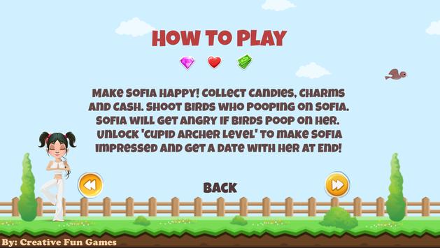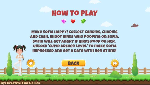 Sofia arrives at the third level of this Skilled Game. You have to fulfill several objectives in this level in order to impress her. The Cupid Archer Level makes for the final level of the game-winning which you will be able to win a date with Sofia.