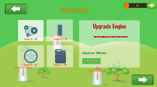 You can choose between different monster trucks. They all have different physic and engine characteristics.