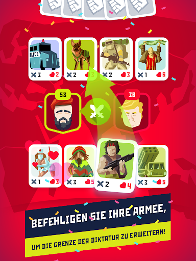 Erlebe diesen einzigartigen Mix aus Kartenschlachten, Strategie und dem Vorgänger des Spiels - Dictator: Revolt!