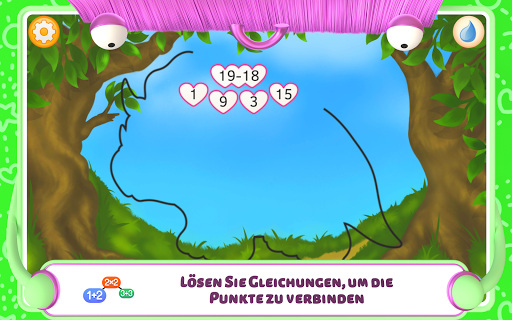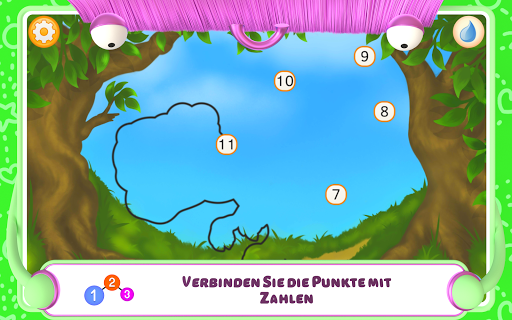 Beim Verbinden der Punkte merken sich die Kinder schnell die Reihenfolge der Zahlen und lernen das Zählen. Dabei müssen nacheinander Kreise mit Zahlen ab 1 verbunden werden. Werden die Kreise in der richtigen Reihenfolge verbunden, tritt die Silhouette des versteckten Bilds immer deutlicher hervor. Falls drei Punkte falsch verbunden sind, öffnet sich ein Pop-up-Fenster mit einem Tipp. Sind alle Punkte verbunden, ist das Bild vollständig sichtbar und kann ausgemalt werden.