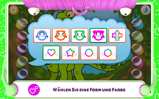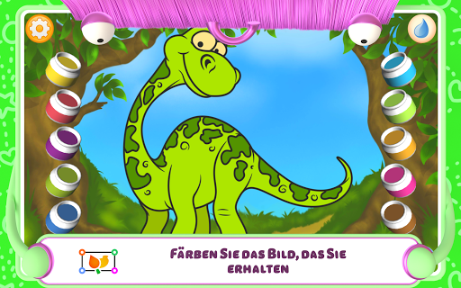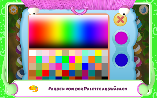 Der Ausmal-Modus eignet insbesondere für junge Künstler. In diesem Modus malen die Kinder Bilder aus, ohne Punkte zu verbinden. Das Ausmalen ist noch interessanter, wenn die Kinder eine der voreingestellten Farben auswählen. Drücken und halten Sie dazu den Farbtopf und wählen Sie die gewünschte Farbe aus der Palette aus.