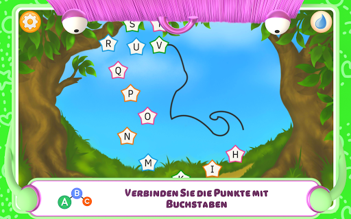 Kinder, die das Alphabet lernen, können den Buchstaben-Modus wählen. Es ist wichtig, dass Kinder die Buchstaben möglichst früh lernen, denn das ist die Voraussetzung für das Erlernen von Lesen und Schreiben. Genauso wichtig ist jedoch auch die Reihenfolge der Buchstaben im Alphabet! Diese Reihenfolge können sich die Kinder merken, wenn Sie die Kreise mit den Buchstaben in der richtigen Reihenfolge verbinden.