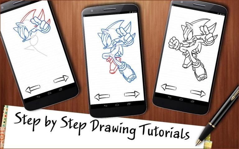 Just repeat, what has already drawn by our artists and you will be surprised when you see the result. Your drawing will be just perfect. Each drawing lesson contains about 10 "steps" and each of them takes you to the ideal completion of your Sonic drawing. Draw in any convenient place, when you want. The application is available for one click download and can even work if you are offline! Finished drawings you can save to your phone or tablet. Amaze your friends with your new skills If you want to learn how to draw a hedgehog perfectly nice, we'll teach you.