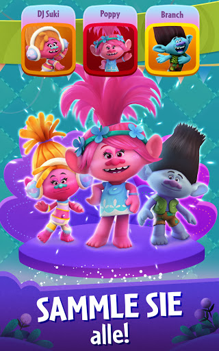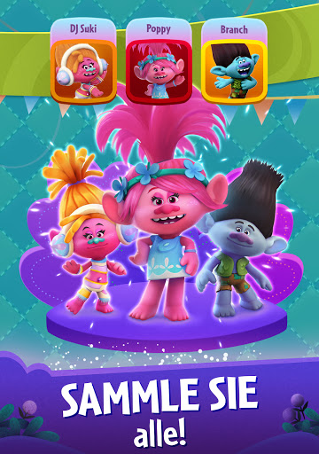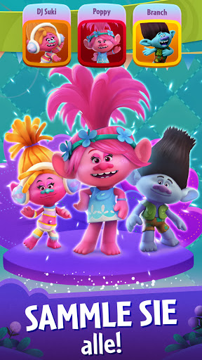 • Sammle deine Lieblingstrolls: Sammle Sticker um Poppy, Branch, DJ Suki und mehr zu deiner Trollsammlung hinzuzufügen und gemeinsam Blasen platzen zu lassen.