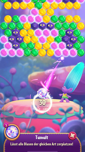 Lass Blasen der gleichen Farbe platzen, während du dich durch Level sprengst und dir Belohnungen verdienst! Sammle neue Trolls für dein Team und lass die Blasen mit ihrer Hilfe platzen! In diesem Bubble-Shooter-Puzzlespiel hat jeder Troll seine eigenen Kräfte, die dir bei den Herausforderungen helfen werden! Passe die Trolls deinen Wünschen an, um ein für dich passendes Team zu erstellen!