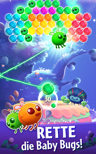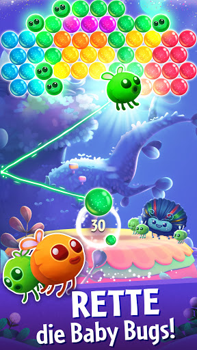 • Power-ups: Brauchst du etwas Hilfe beim Platzenlassen der Blasen? Setze die Magierakete, Regenbogenblase, Tumult und den Disruptor ein, um die Blasen mit Stil platzen zu lassen!