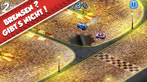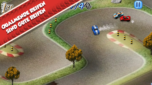 Kurven schneiden solltest du allerdings nicht, denn dann knallst du leicht in die Bande. Außerhalb der Strecke kannst du nicht fahren, also bleibe auf dem Asphalt.