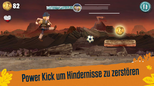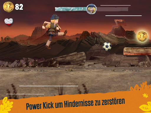 Renn durch prähistorische Landschaften aus dem Film, sammle Bronze Münzen und Fußball Karten um Power Ups freizuschalten. Besiege Nooth im Elfmeterschießen am Ende jedes Levels für Bonus Münzen!