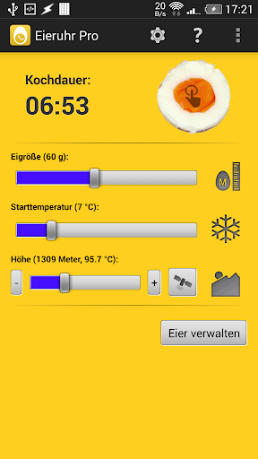 Ihre Laune ist dahin, wenn der Tag mit einem Ei beginnt, welches nicht Ihrem Wunsch entspricht? Dann ist Egg Timer das Richtige für Sie. Mittels wissenschaftlicher Methoden und unter Verwendung von GPS berechnet er die Zeit die Ihr Frühstücksei braucht. Es ist Zeit. Machen Sie Ihr Phone zum Ei-Phone!