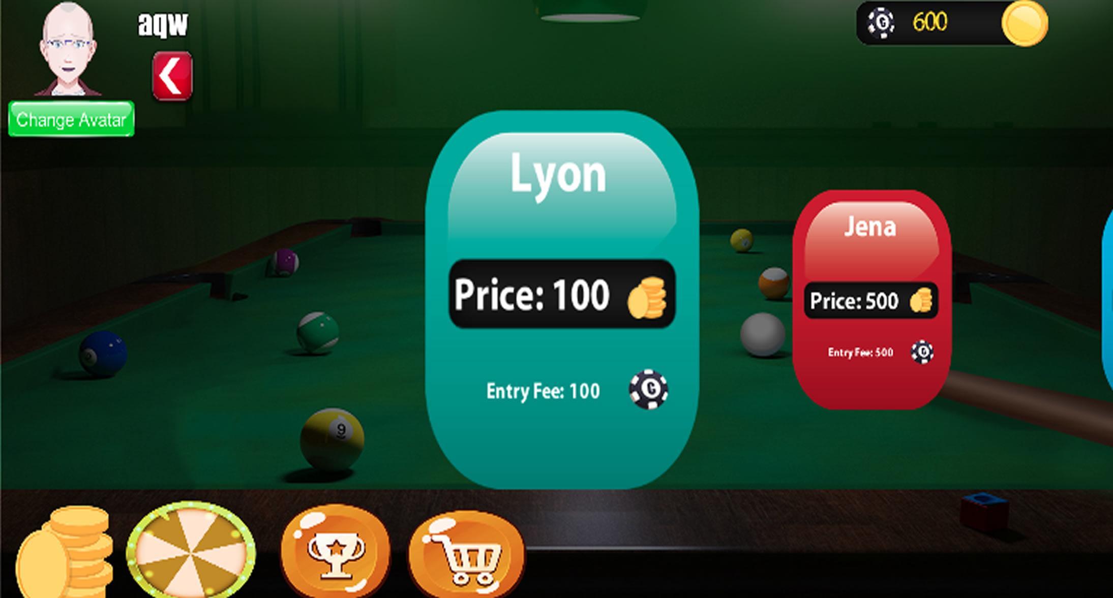 You can upgrade your cue, spin the wheel for coins or earn coins by winning matches against other players online.