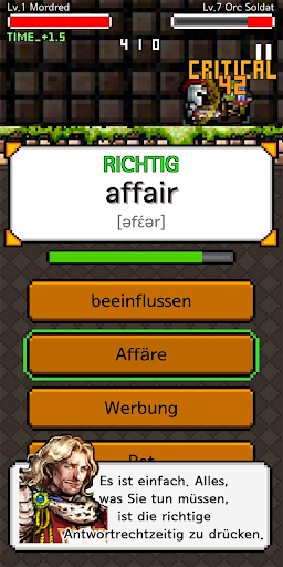 Während Ihr Soldat von dem wilden Monster getroffen wird, können Sie sich die Wörter merken, ohne es zu merken. :)