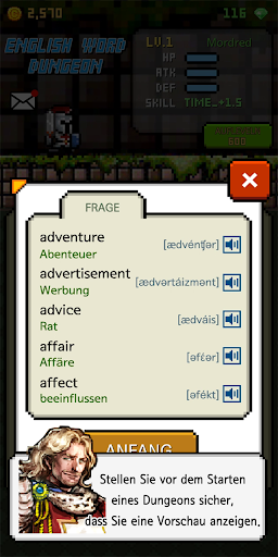 1. Level Dungeon: Sie können englische Wörter auf verschiedenen Levels lernen.