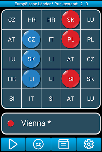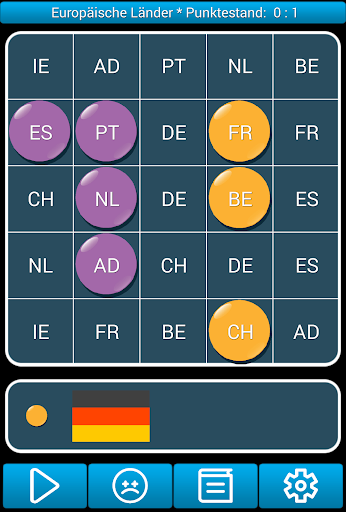 Lege die Chips auf die Tafel mit den Abkürzungen der Namen der Länder und versuche vier in einer Linie zu verbinden.