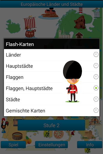 Wähle die Karten: Hauptstädte, Länder, Städte oder Fahnen.