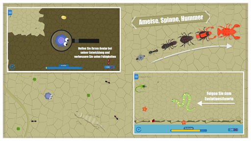 EVO Planet: Folgen Sie dem Evolutionbaum ist ein top-Down-Gelegenheitsspiel. Sie beginnen als ein einfacher Organismus, eine einzelne Zelle, und Ihre Aufgabe ist es, größer zu werden und einer der Evolution-Bäume zu folgen. Essen Sie kleinere Kreaturen oder Gegenstände und erlangen Sie genug Masse, um sich in einen anderen weiterentwickelten, entwickelter lebender Organismus zu entwickeln. Mutat und entwickeln sich in verschiedene Arten von Kreaturen, die besondere Fähigkeiten besitzen und das Land und den tiefblauen Ozean erobern. Im Moment können Sie 40 Entwicklungen, Lebensformen und mehrere verschiedene Arten freischalten. Beenden Sie Rätsel und Missionen, um DNA-Sequenzen und -proben zu sammeln, um Ihre Hybridtiere zu entwickeln. Weitere Entwicklungen und DNA-Proben kommen in Kürze!