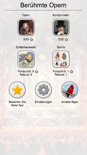 Für alle Opernfans! Demonstrieren Sie Ihr Wissen über die 50 meistgespielten Opern von den wichtigsten Opernkomponisten. Die App hat 2 Spielstufen: